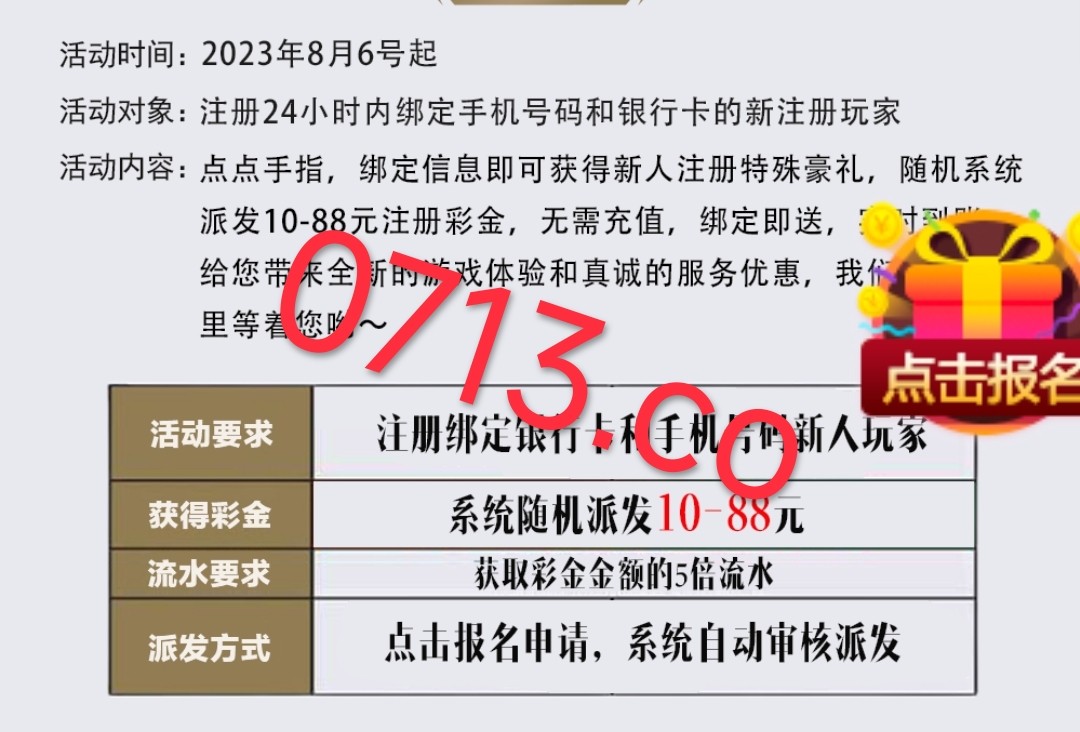 老项目了 玩过的换号 没玩的去玩 新用户注册绑卡绑定手机号 优惠里面找到新人彩金的优惠 点击报名秒送10~88彩金 限制游玩电子捕鱼 5倍流水 最低提款100元