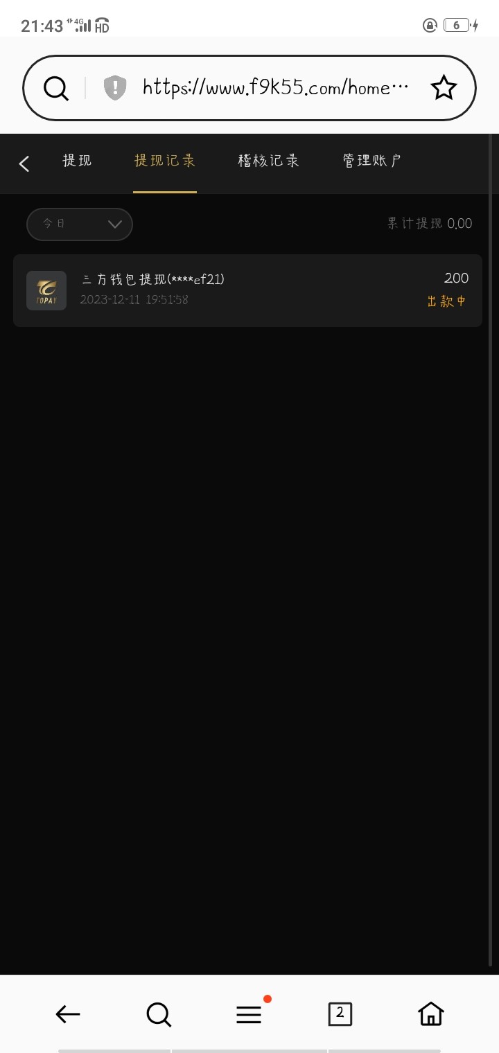 我提了200半小时了不知道能不能到账
