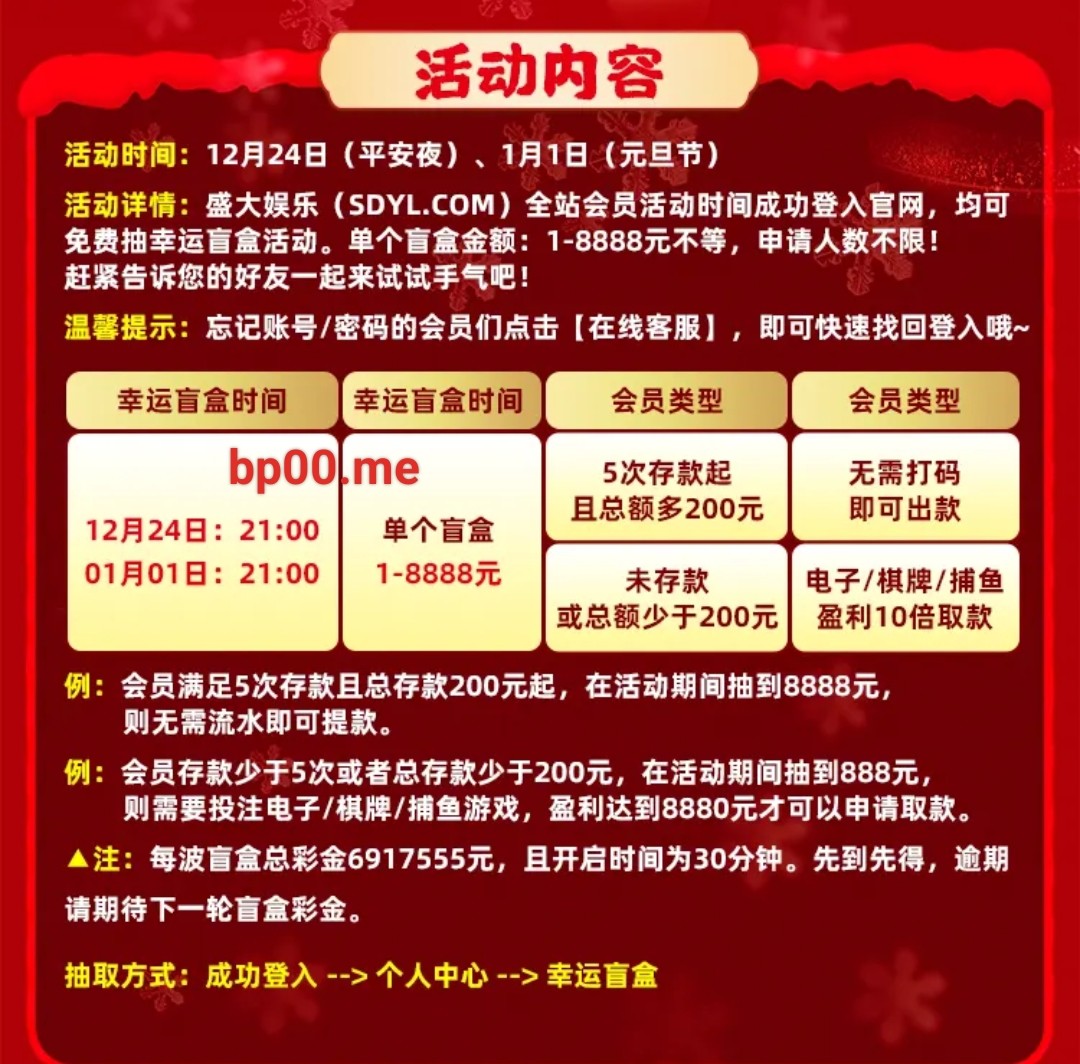 以前特邀系列里面发过这个平台 之前的盲盒活动我也发过 有抢到几百块的 老用户看活动时间登陆账号-个人中心-幸运盲盒去抢就行 游戏和提款限制自行查看优惠