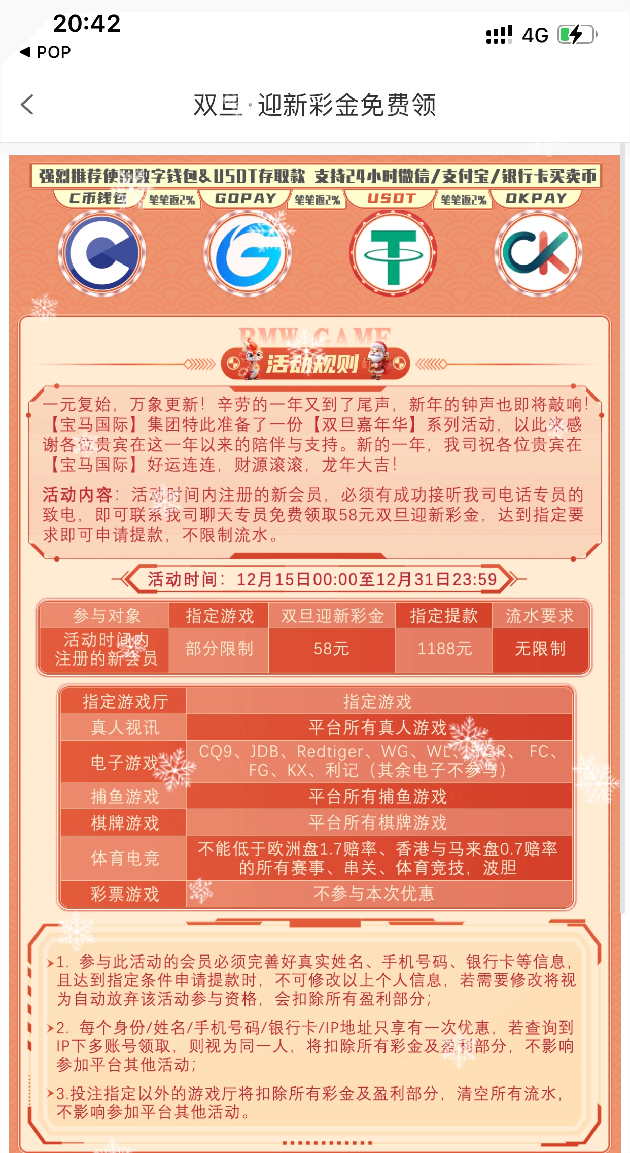 12月15-12月31注册送58 还有3天