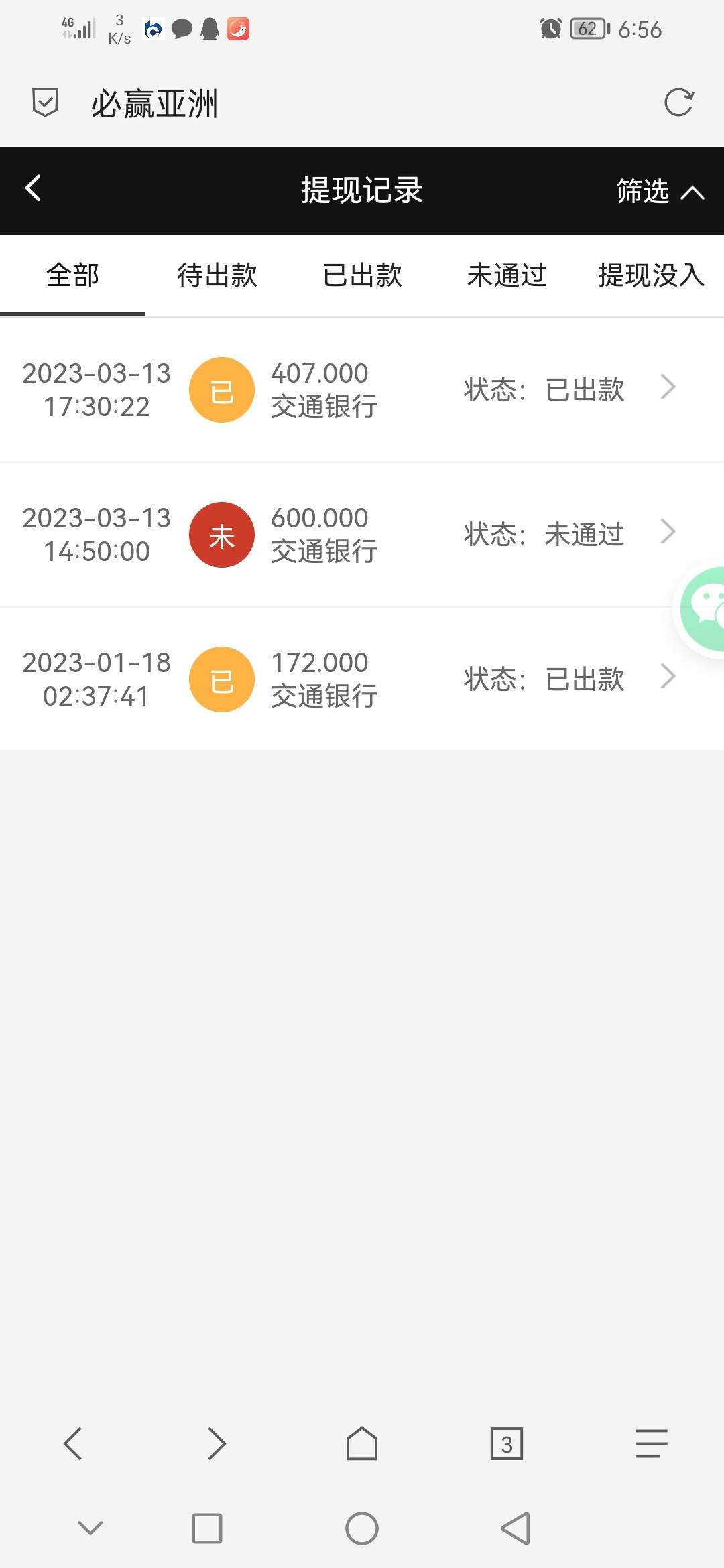 提了100不知道能不能到 现在已经半小时过去了