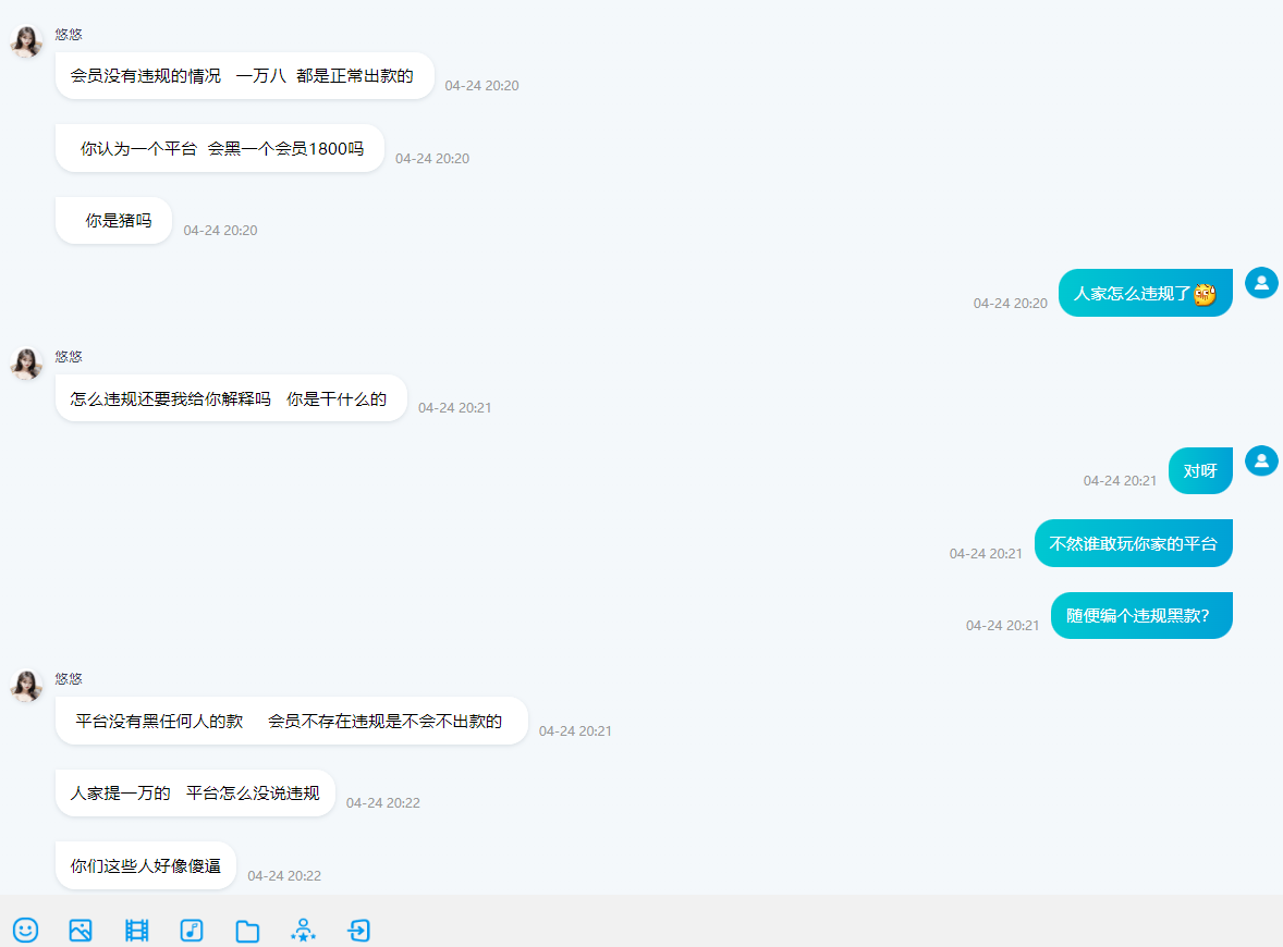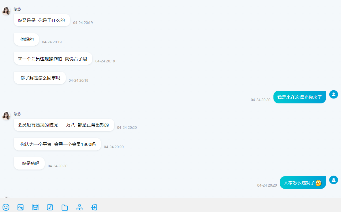 客服全程骂人毫无素质,老哥们这样的台子谁敢玩