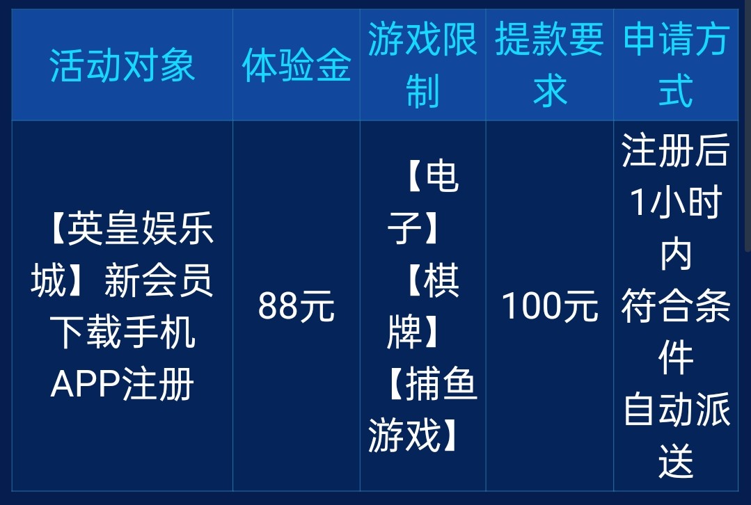 新用户注册下载APP绑定手机号银行卡一个小时送88没送就是不符合限制电子/棋牌/捕鱼 最低提款100 具体自行查看优惠