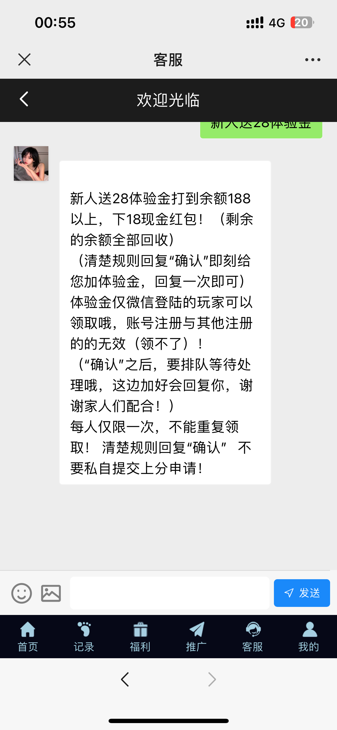 微信扫码平台 新人送28体验金打到余额188以上,下18现金红包!(剩余的余额全部回收)