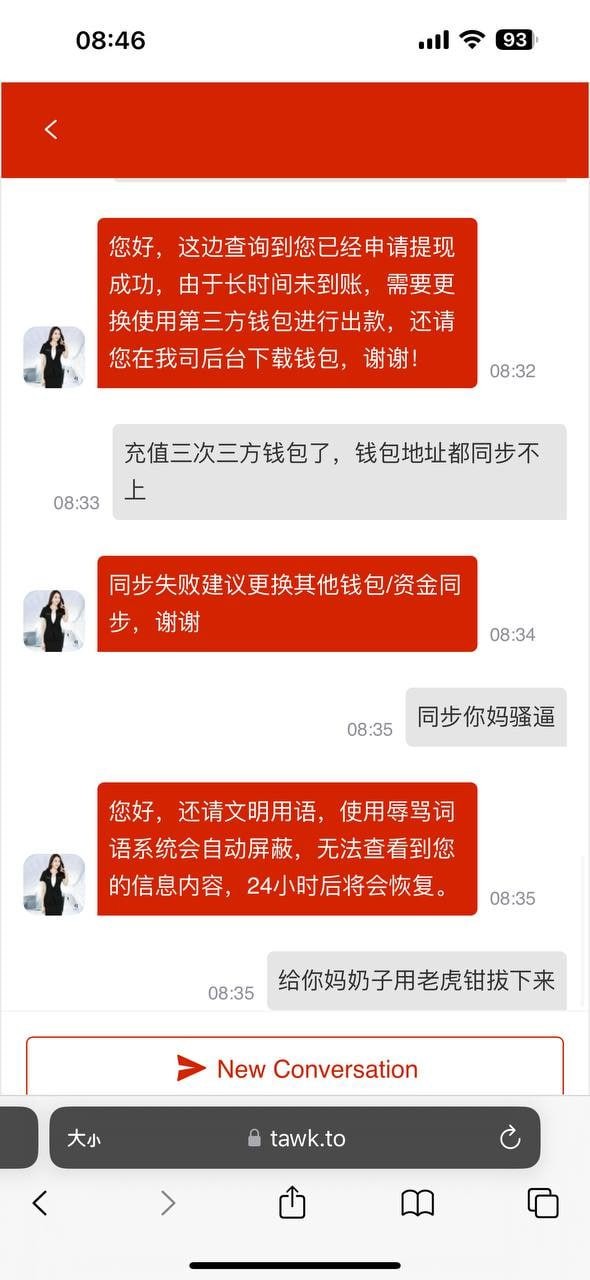 大唐模板,短信特邀100送58,取款直接空汇,让我绑定别的三方钱包,最搞笑的是,客服说绑定别的三方钱包要用钱包再进行充值才能自动绑定,我充了两次100和105都没用,包黑的