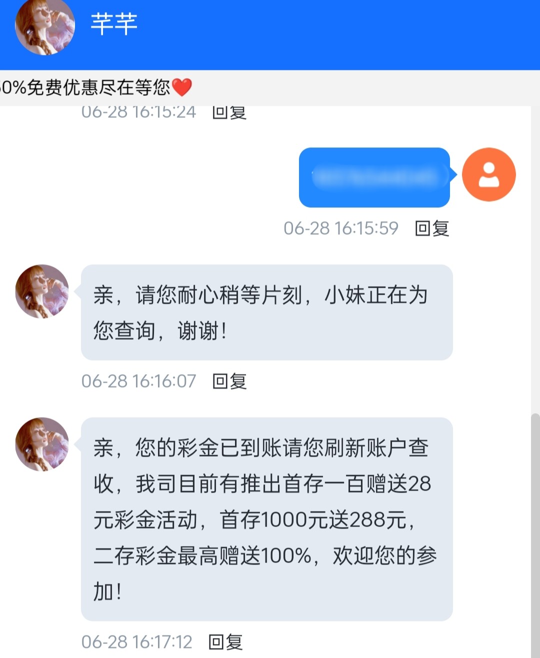 我是接到电话让我注册联系咨询客服,注册好了直接联系咨询客服