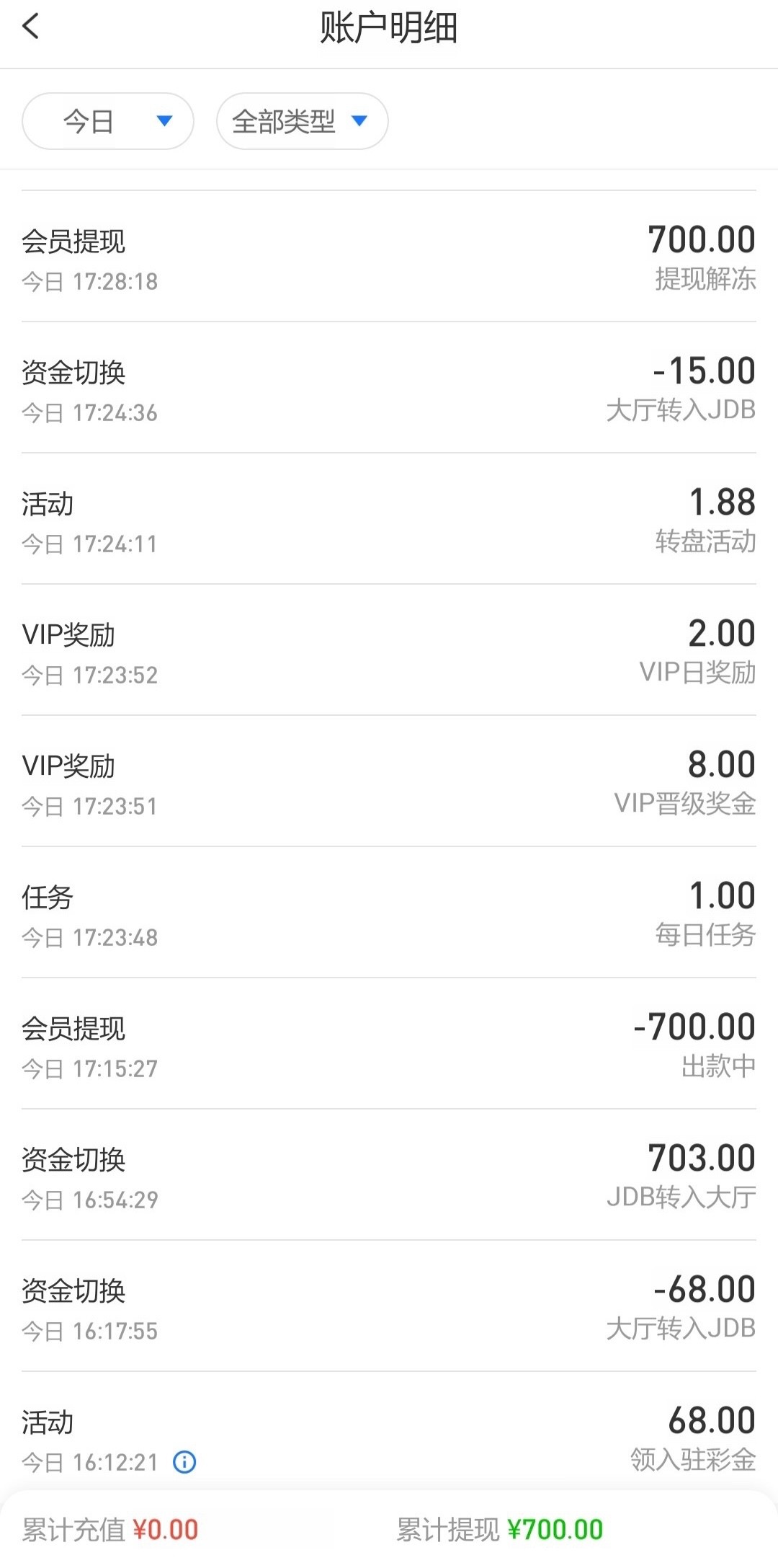 我920万流水,申请到188,打输完,充值60送了8,提1200多冻结了