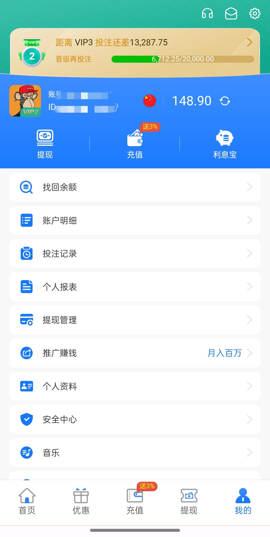 前几天输了几千进去刚刚接到电话说是女神回访神秘彩金登入上号就有了,给我送了148不过没用全空了