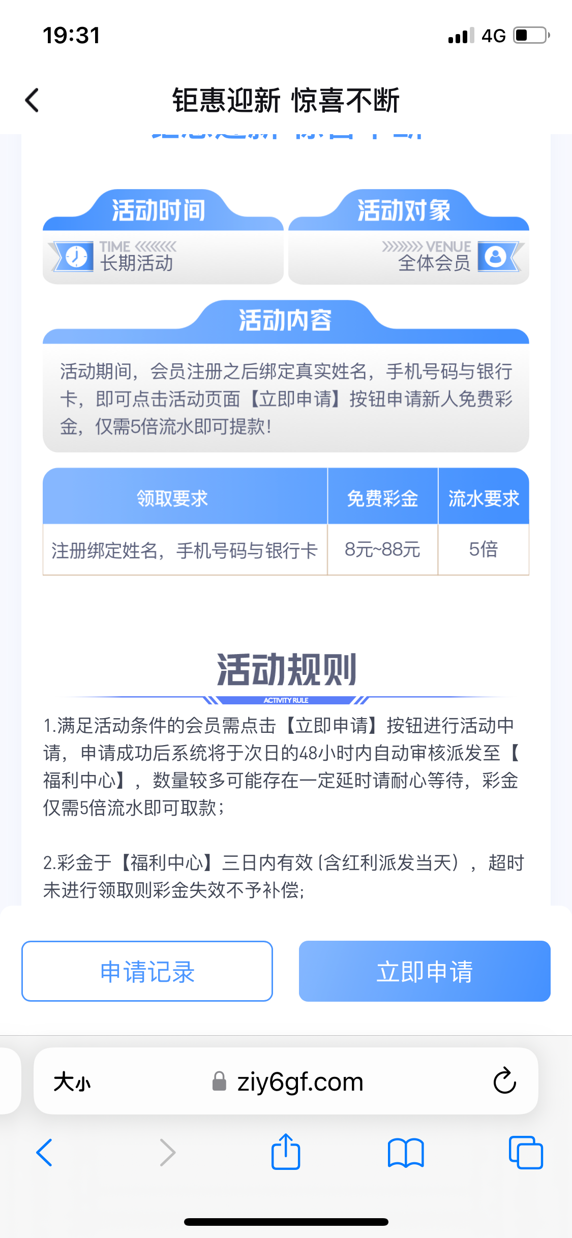注册绑卡手机号去活动申请第二天去福利中心领12