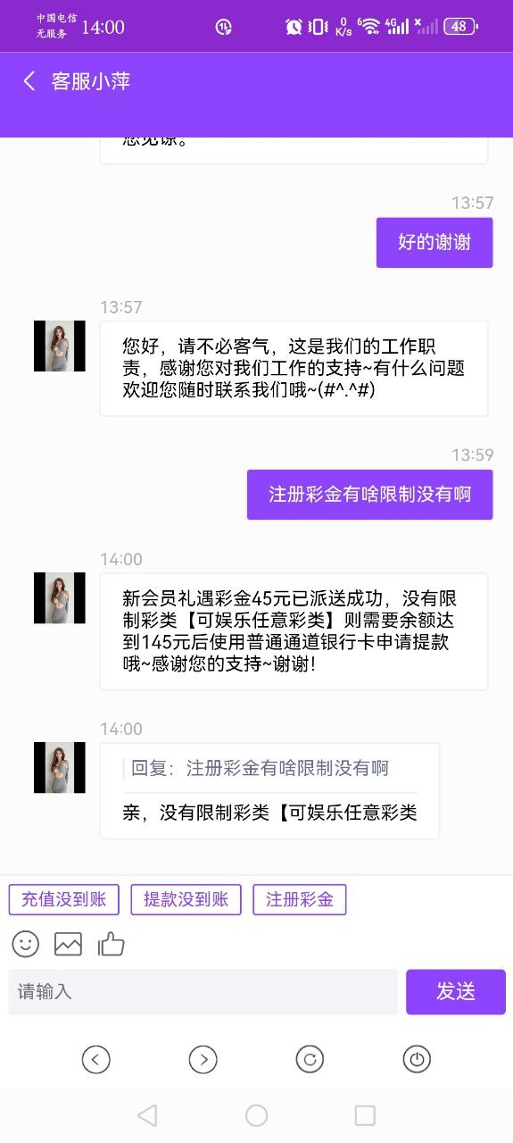注册送45,打了4800不给出