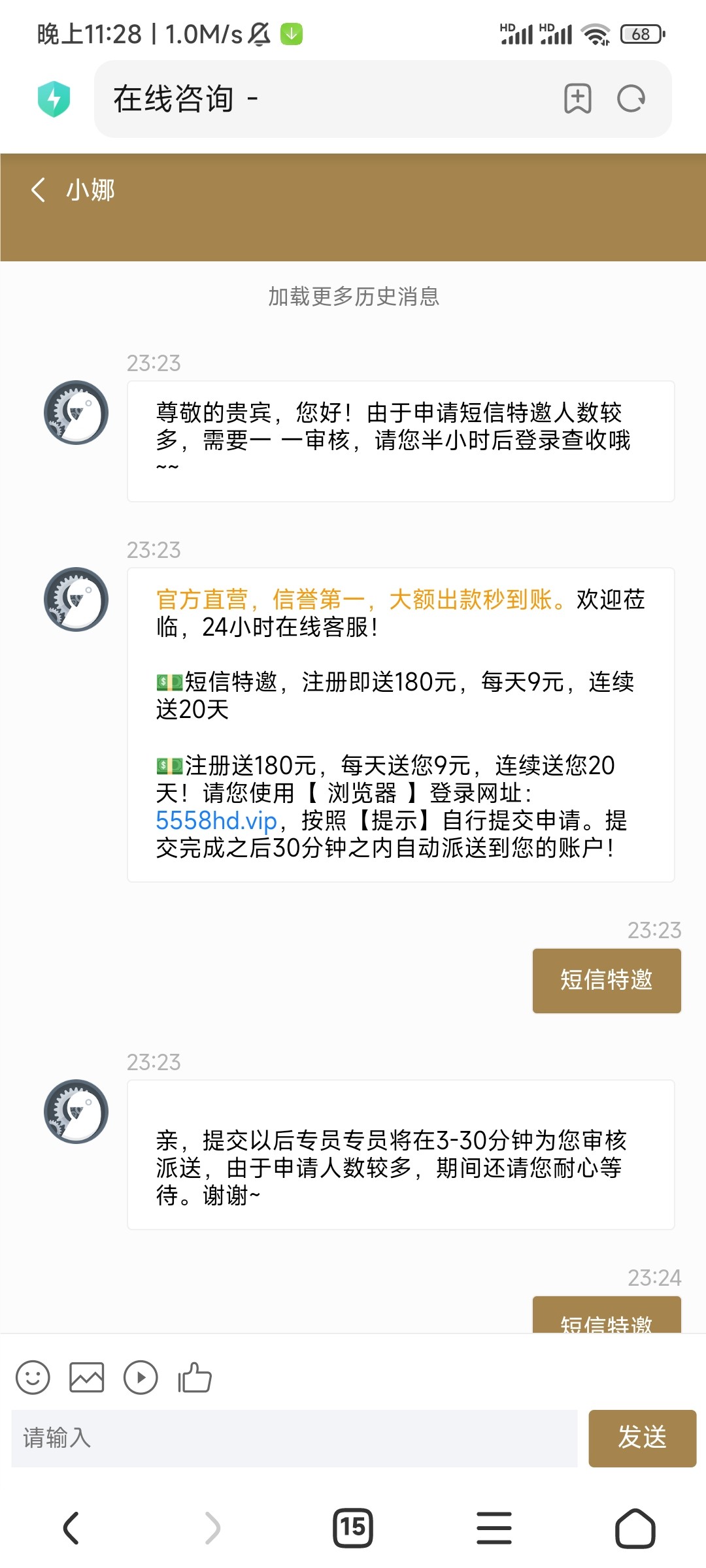 是特邀今天来的短信,审核五个小时了
