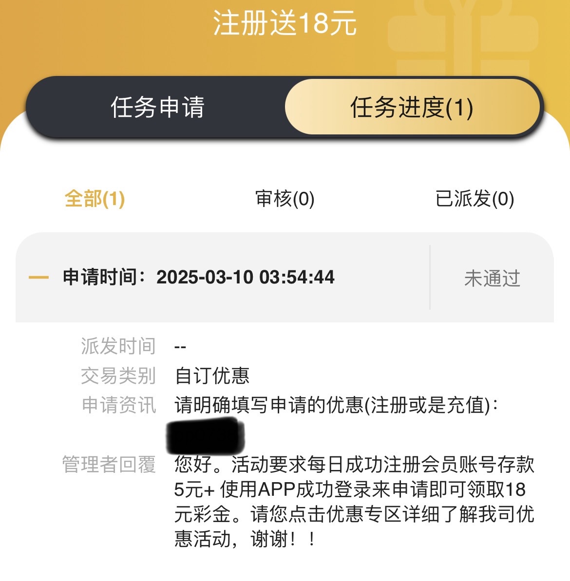 我刚刚去申请了,要存款5元以上,下载APP登入才行,这个平台最低充值是10元,有兴趣的老哥可以去试试,被黑不负责哈