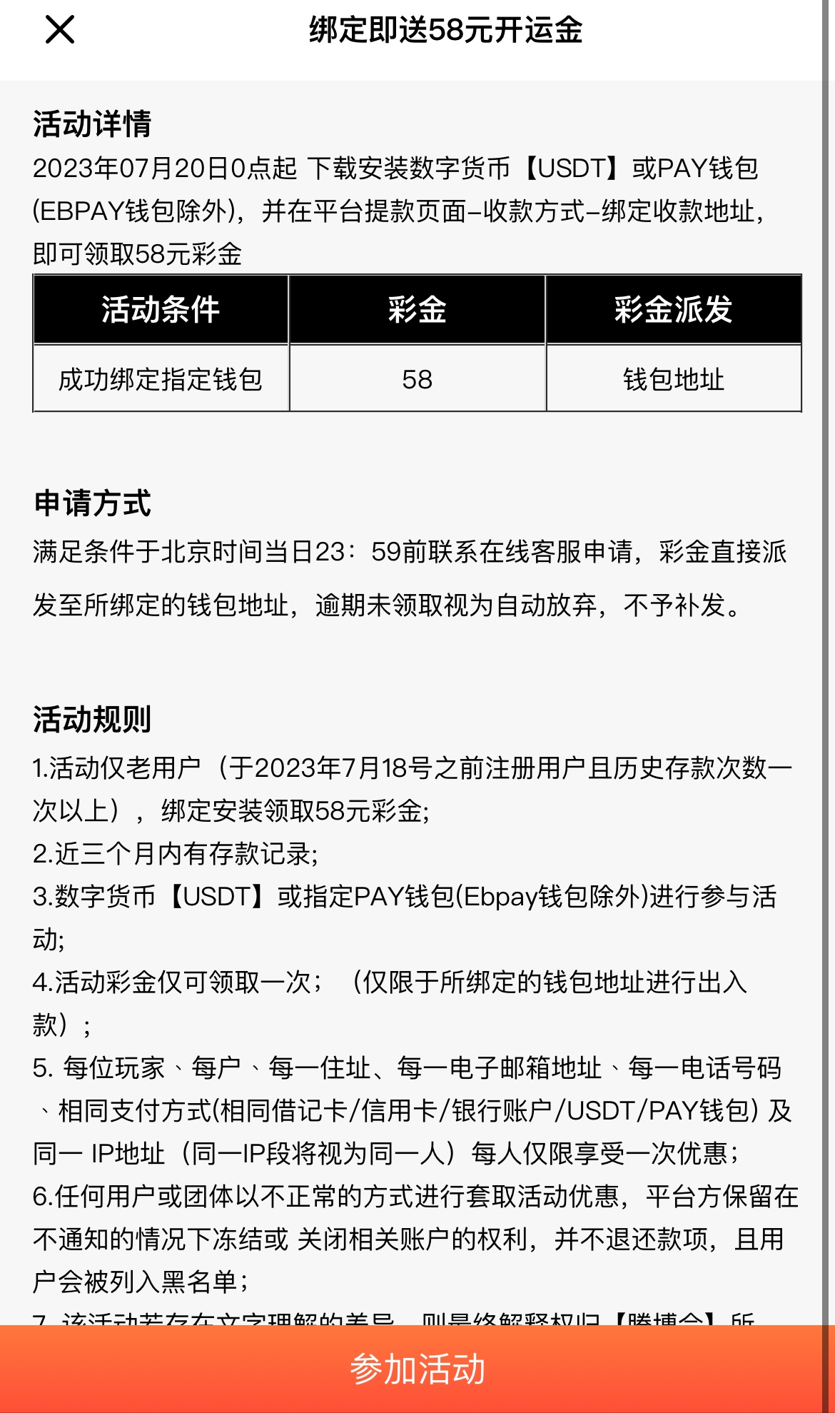 三个月内有历史充值过的兄弟可以领58块直接发到钱包里的,满足要求的兄弟去领