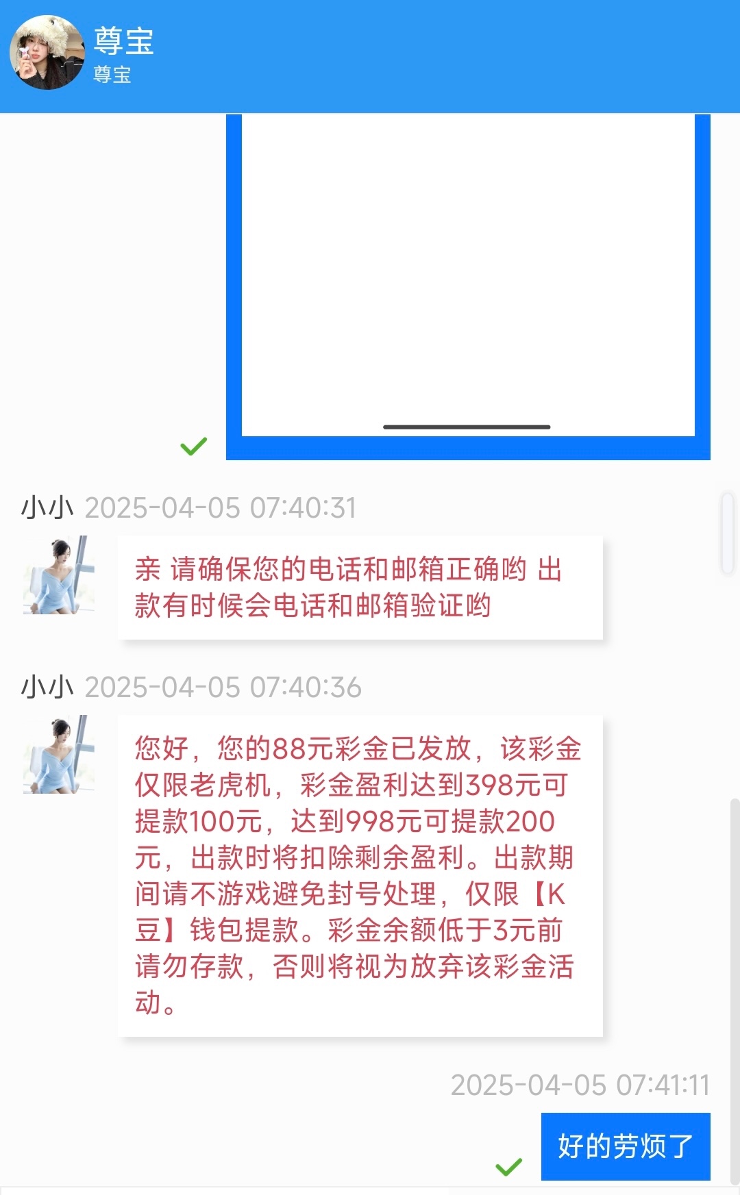 注册完善所有信息,客服申请可以碰瓷