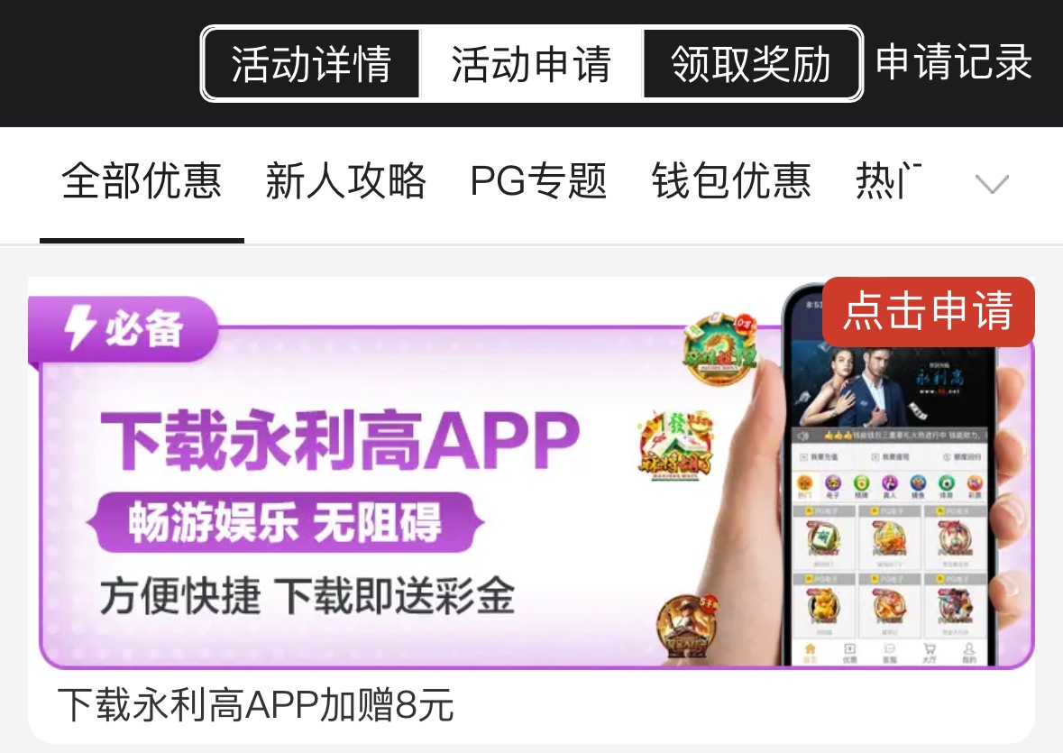 永利高60:下载APP/绑卡/填写QQ/绑手机号/设密保/然后优惠里自助申请,限电子捕鱼棋牌,盈利满10倍才能取款