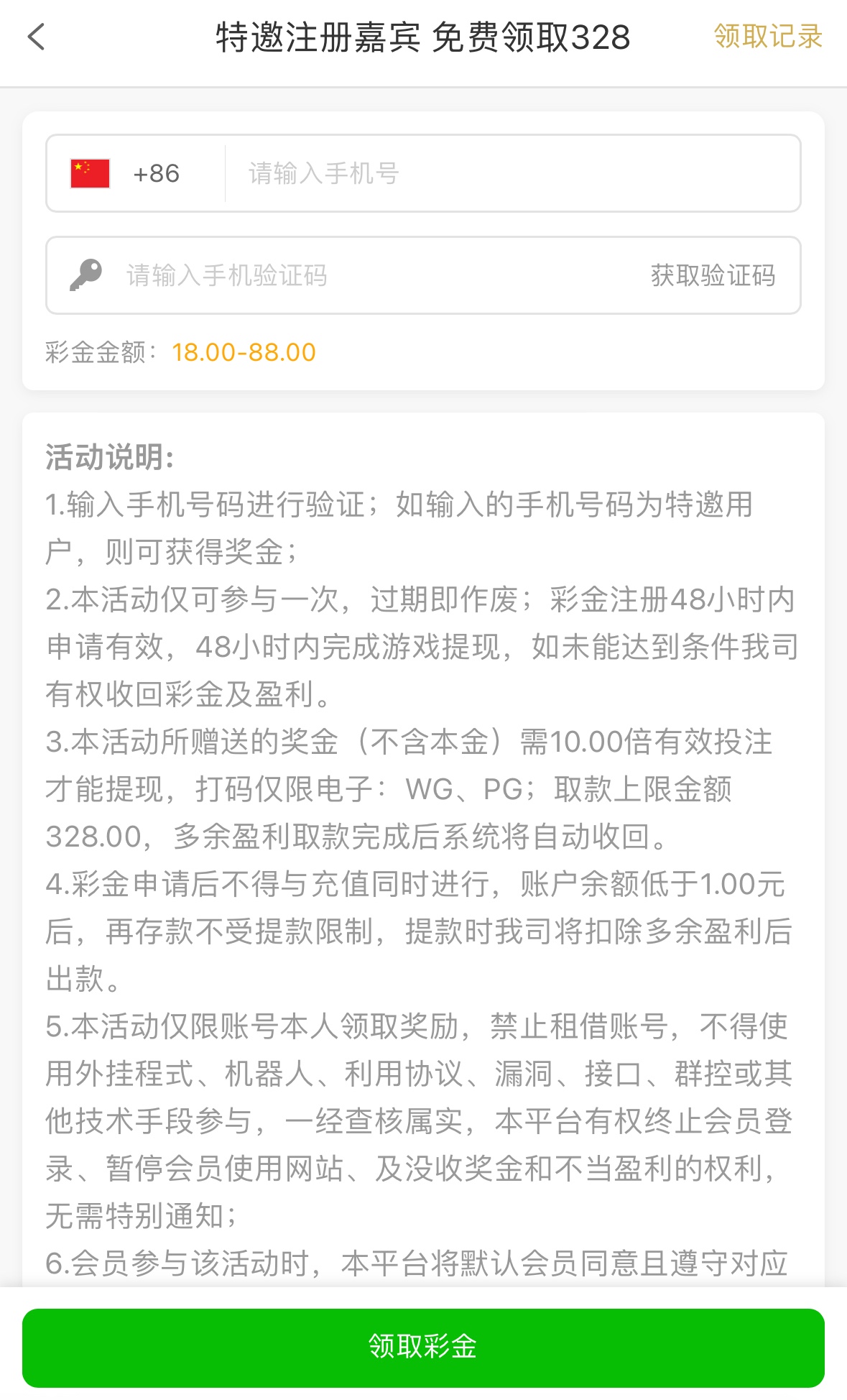注册完善信息优惠里自助领取,10倍流水,仅限WG/PG,取款上限328