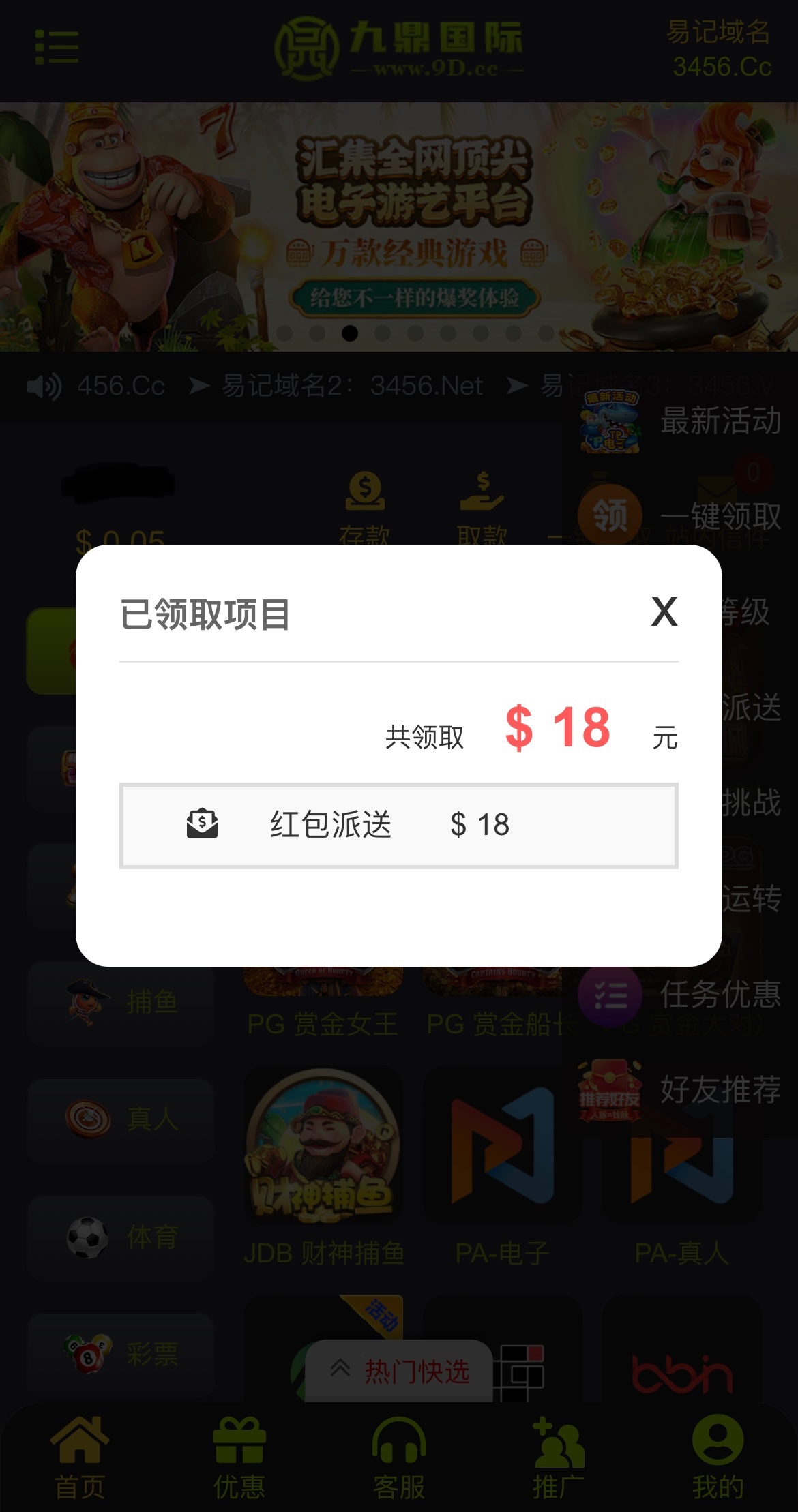 有段时间没登入过的可以登入上去看看有没有弹窗领取
