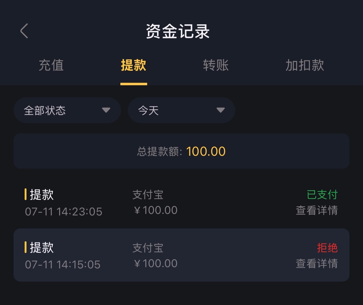 出款情况:自测(