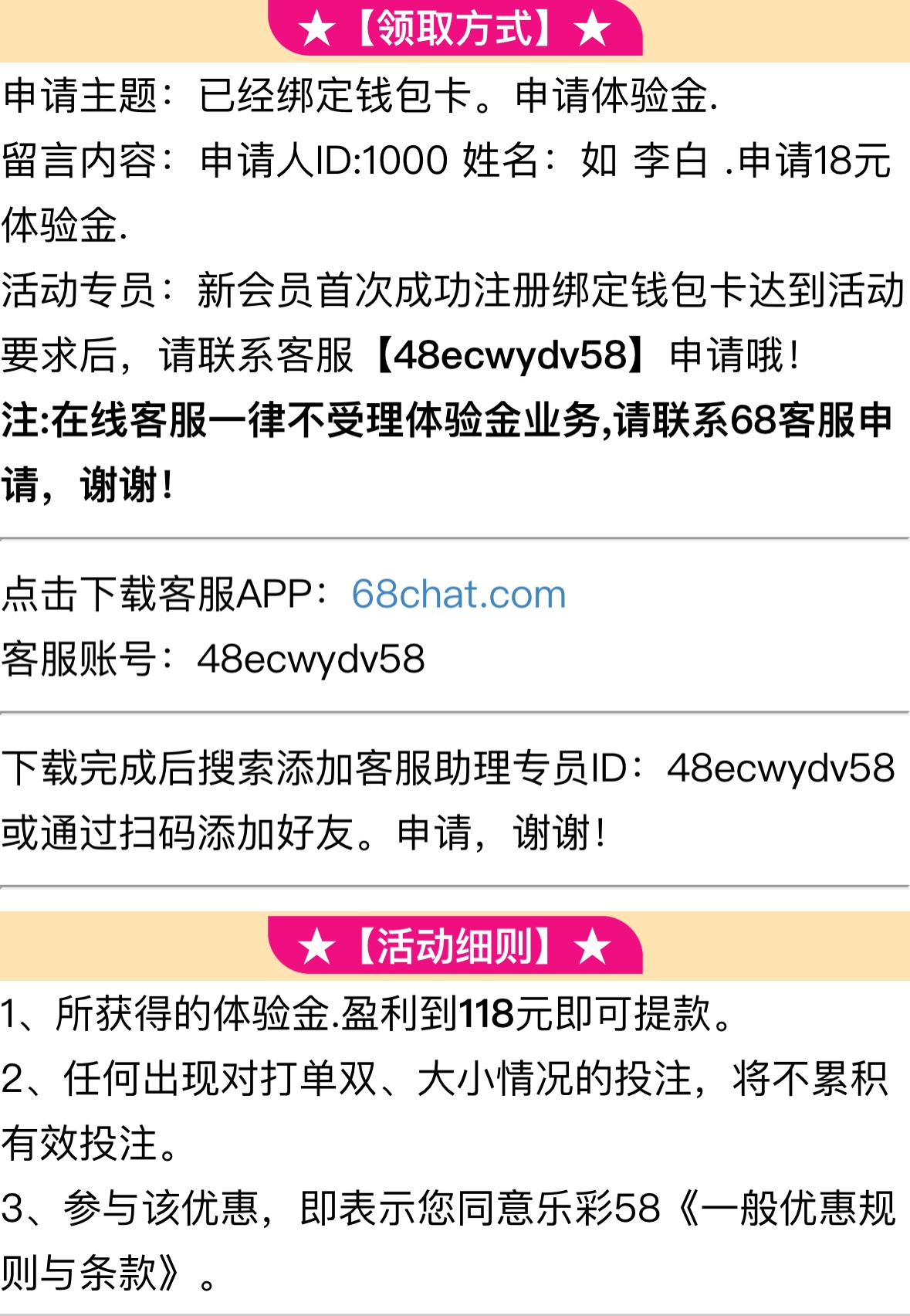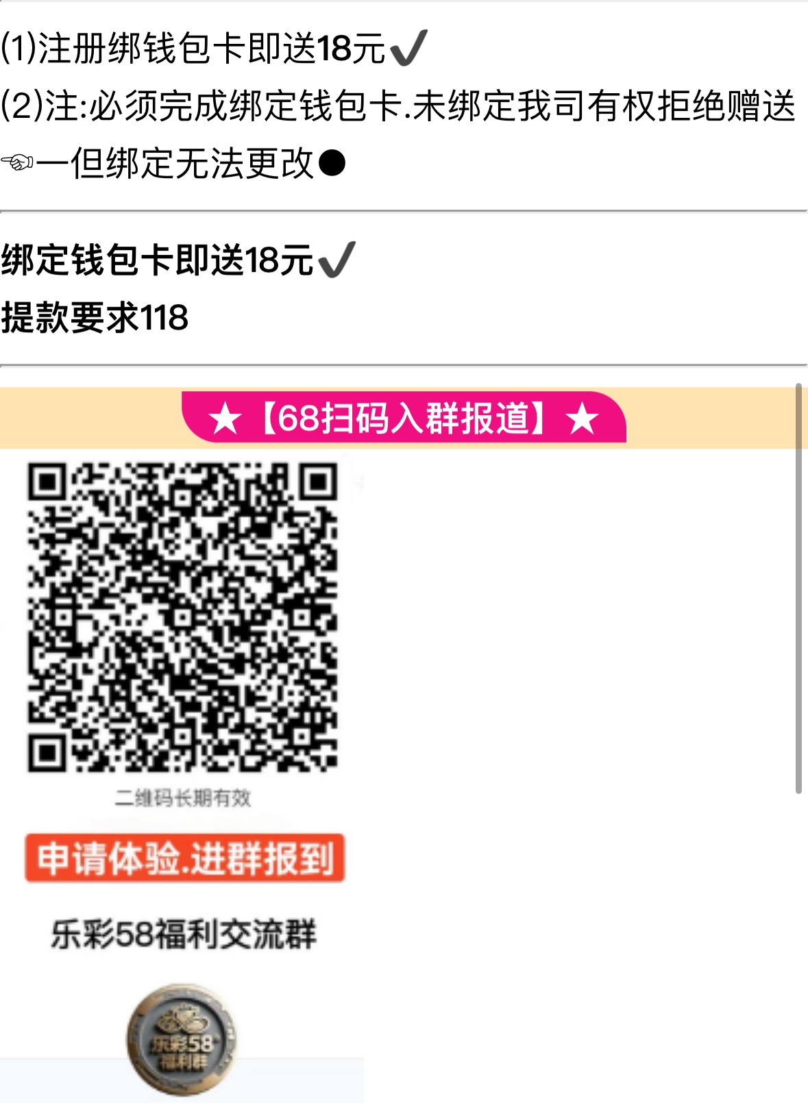 注册绑定钱包和银行卡联系68专员领取彩金,最低提现118,68客服账号:48ecwydv58
