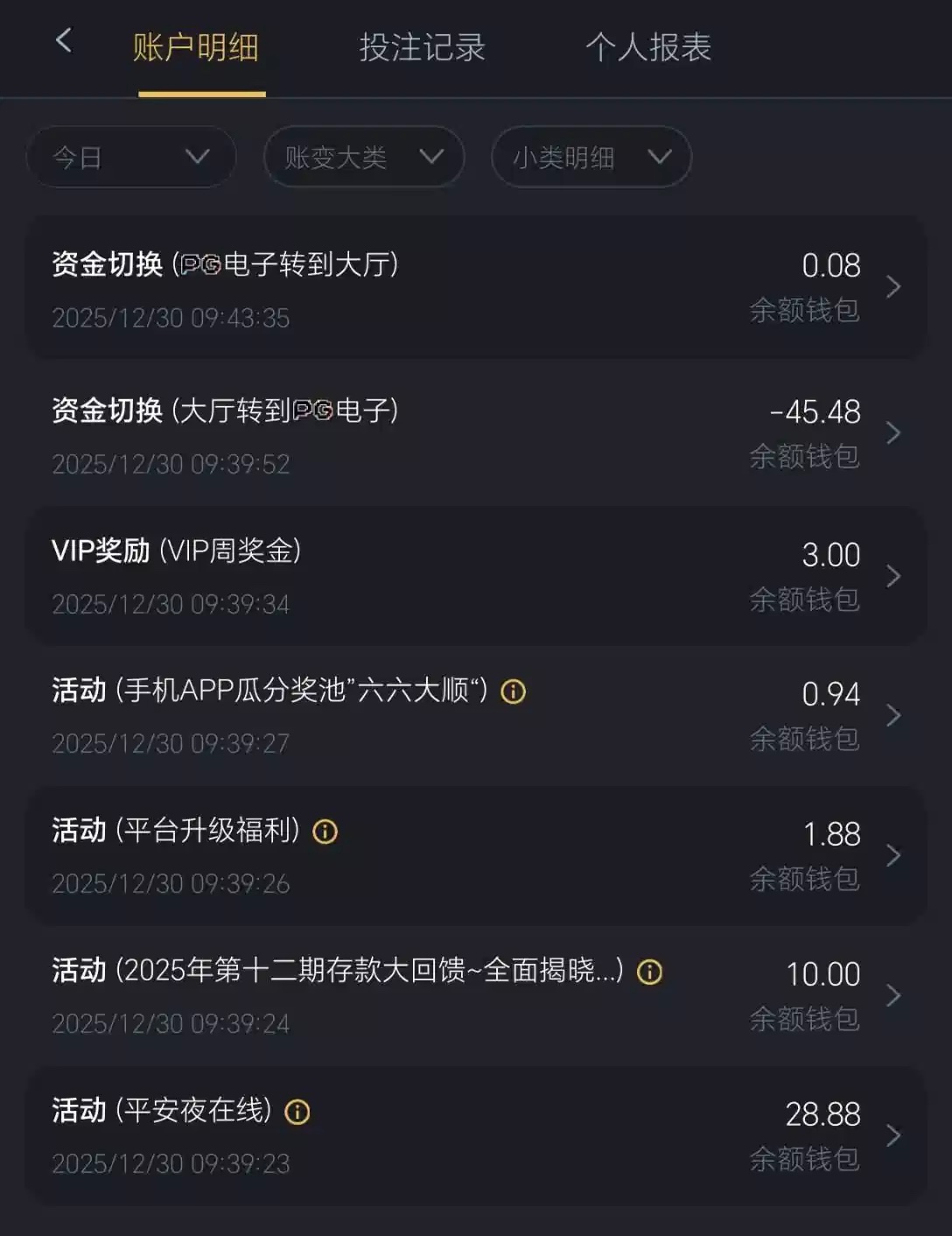 有号的兄弟可以登入上看一下有没有彩金领取
