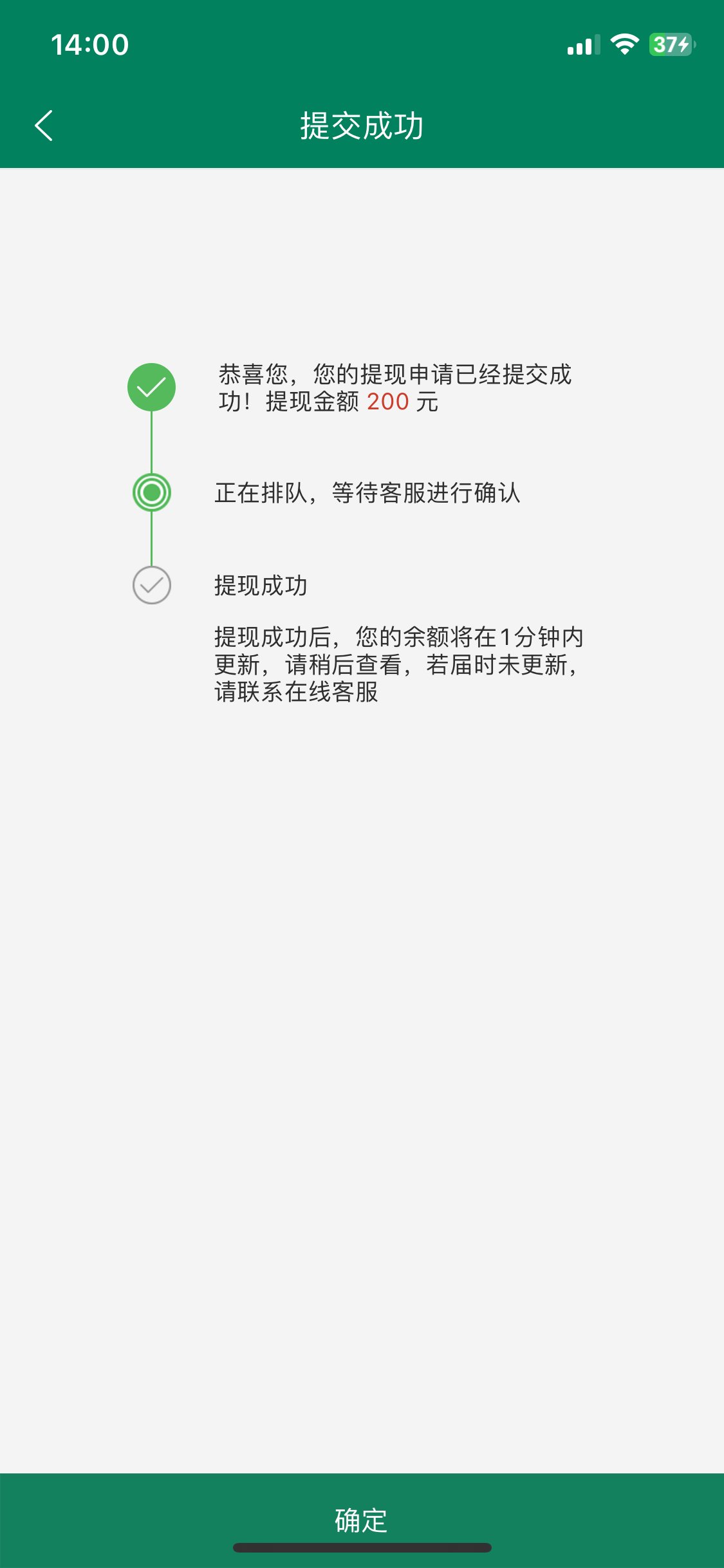 100提210到账了打到400  看你们都让黑  不敢提  然后200提  10分钟到账