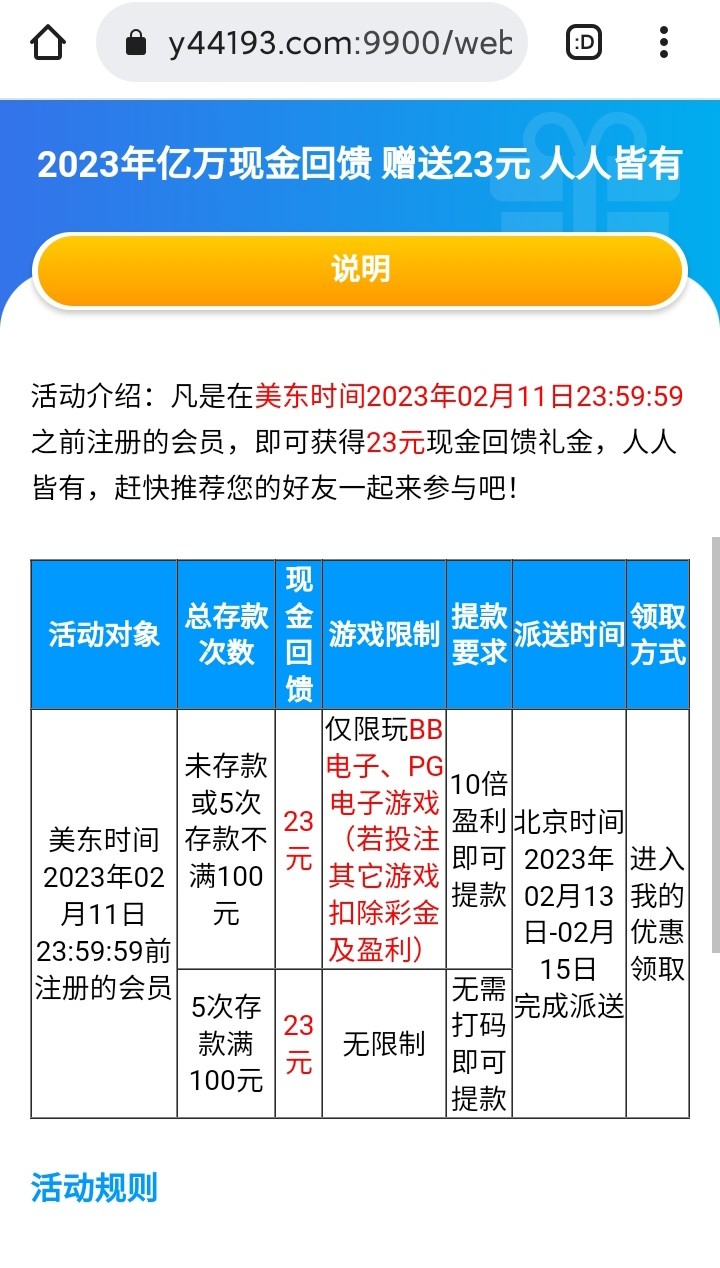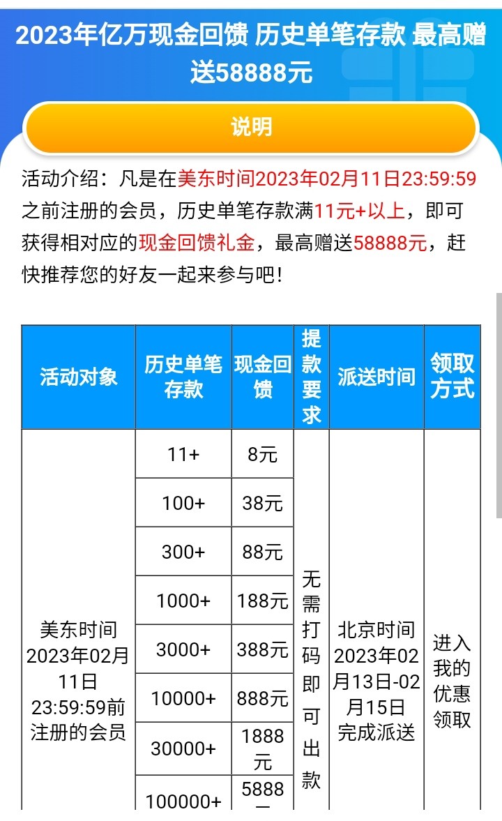 回馈23,另外后面还有历史单笔存款回馈,拭目以待吧。