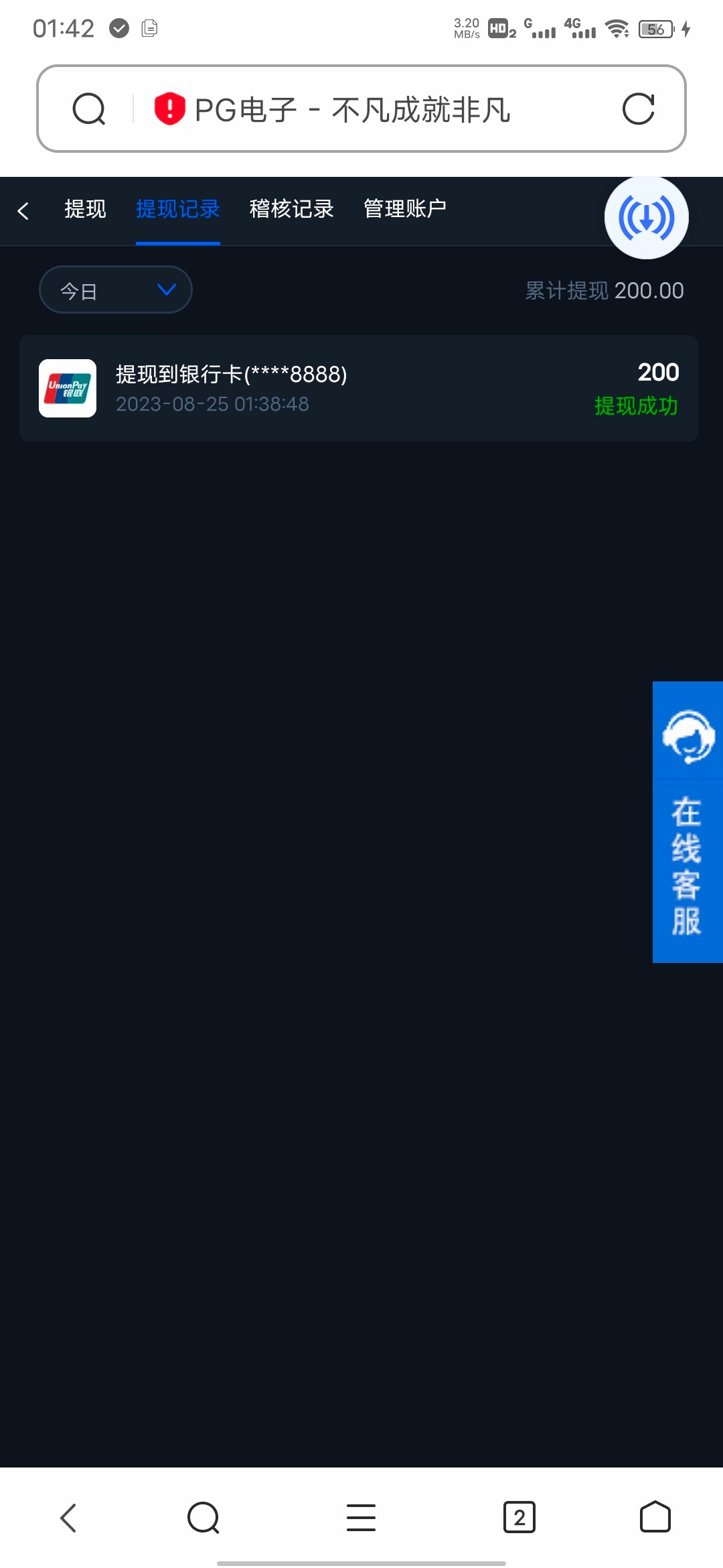 200到账